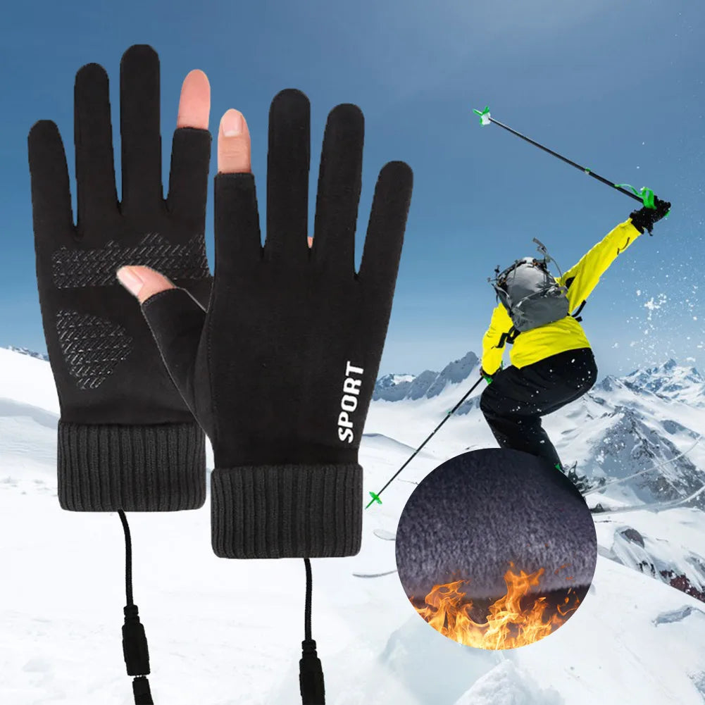 Touch Screen Gloves Non-Slip USB Rechargeable Windproof Warmer 2 Finger Heated Gloves Heated Motorcycle Gloves for Women Men