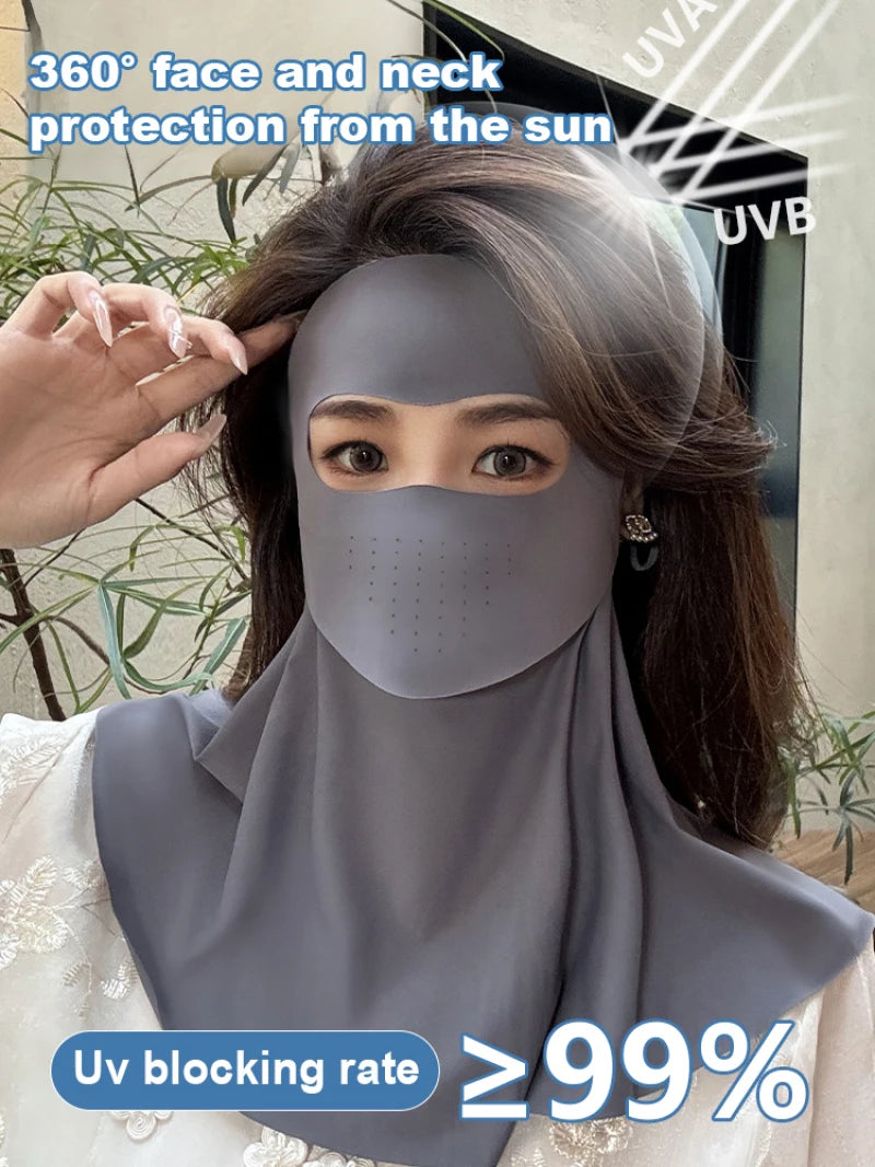 Ice Silk Full Face Mask Female Summer Sunscreen Neck Protector UV Mask Riding Female Full Face UV Protection Neck Protector Mas