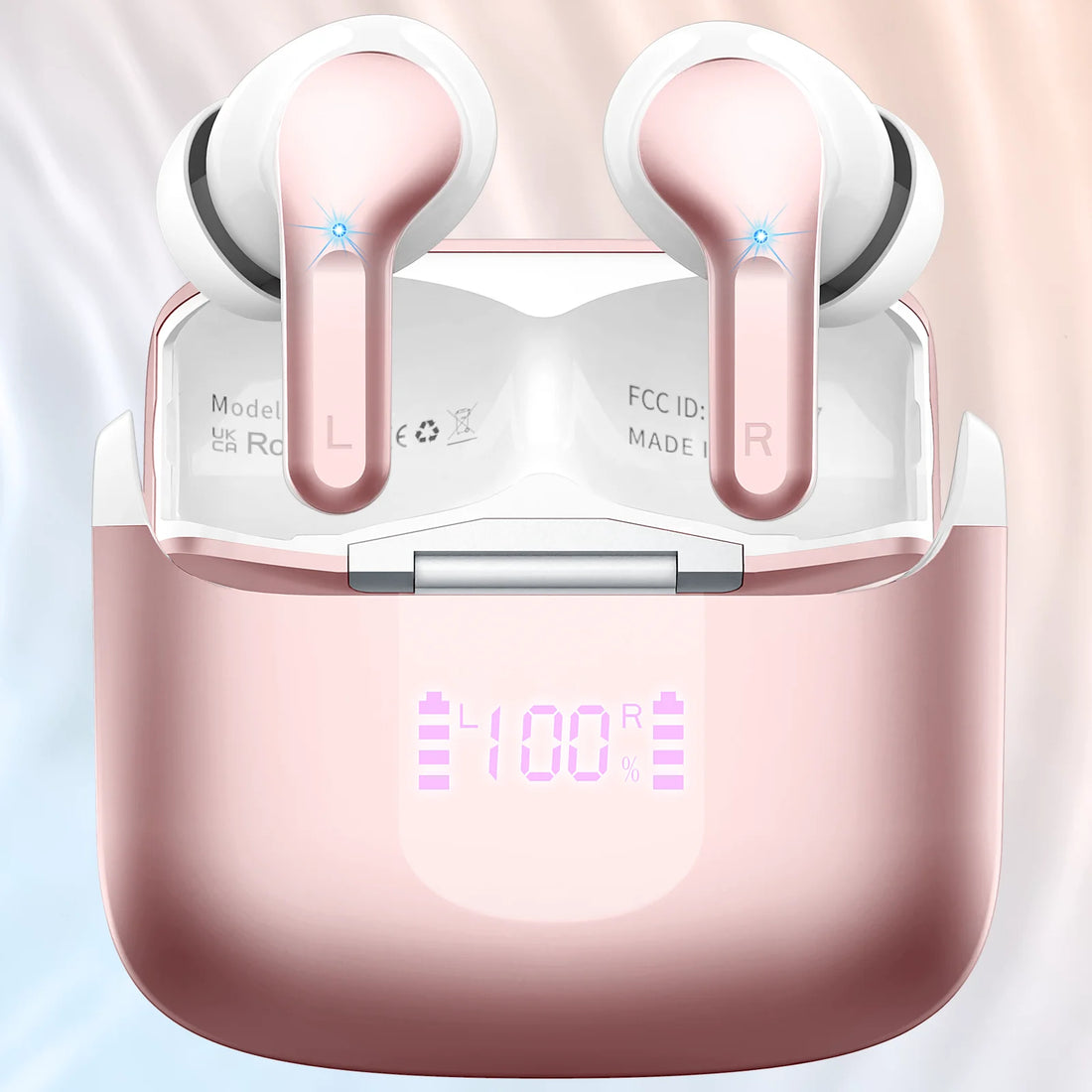 Wireless Earbuds, Bluetooth 5.3 Headphones Sports Headphones In Ear with 4 ENC Noise Cancelling Mic, 40H Playback , LED Display.