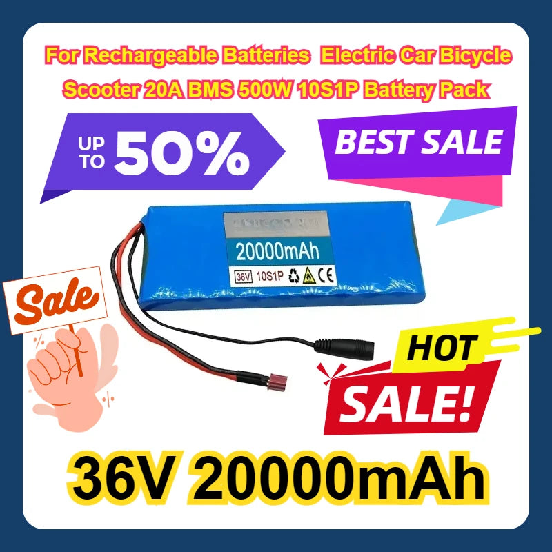20Ah 18650 Lithium Li-ion For Rechargeable Batteries Electric Car Bicycle Scooter 20A BMS 500W 36V 20000mAh 10S1P Battery Pack