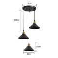 3 Lights Vintage Industrial Pendant Light, Metal Edison Design,Black Metal Hanging Chandeliers,E27 Ceiling Lighting for Kitchen