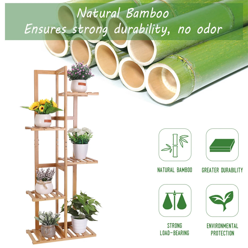 5 Tiers Bamboo Plant Stand Tall Flower Stand Storage Display Rack for Indoor Outdoor