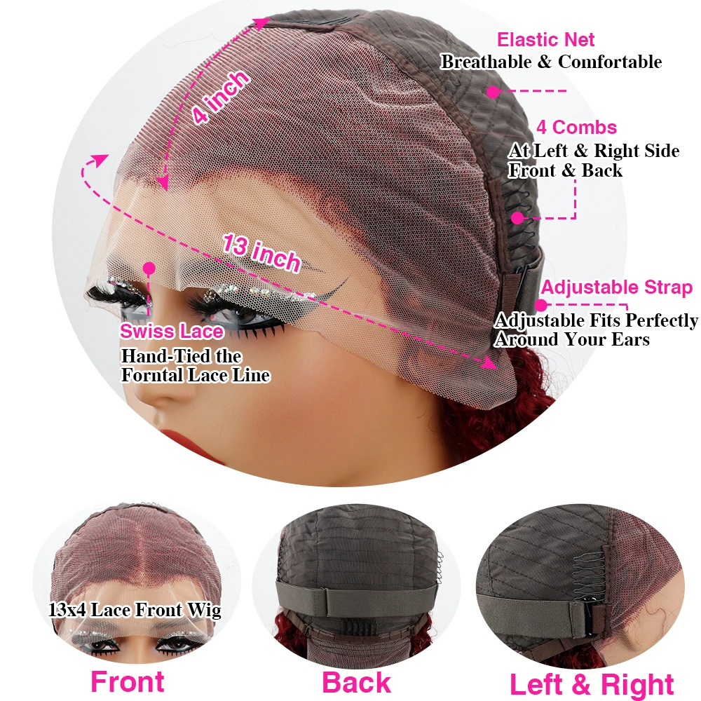 99J Burgundy Lace Front Wig Body Wave Human Hair Preplucked 200 Density 42 44 Inch 13x4 13x6 HD Lace Frontal Wigs For Women