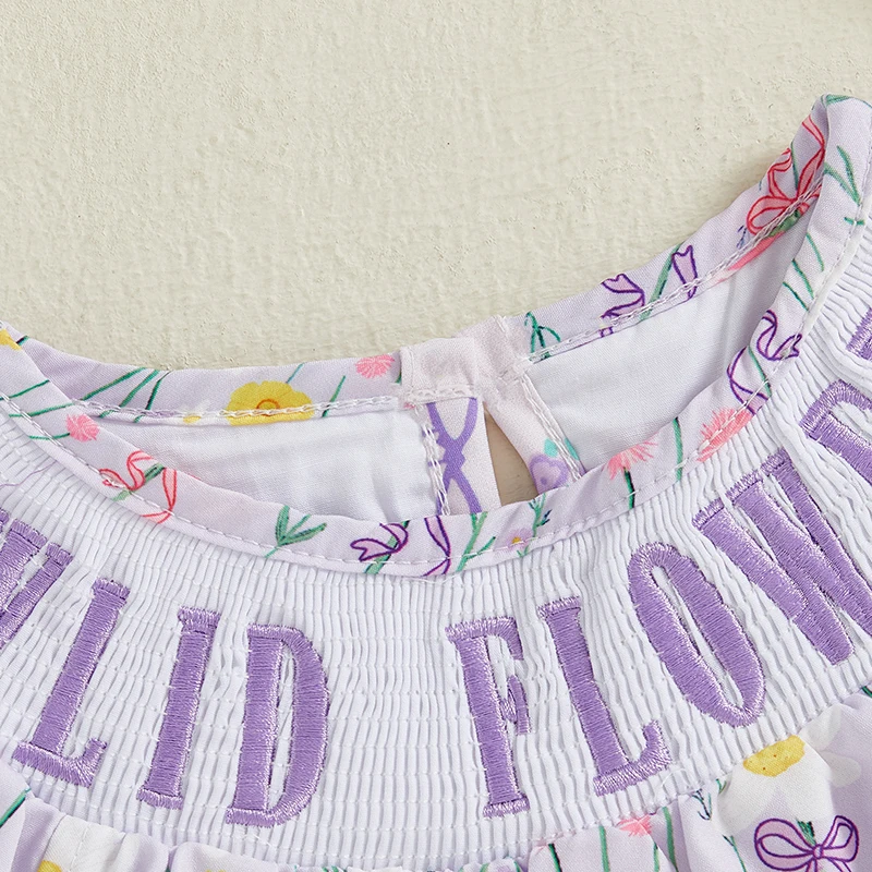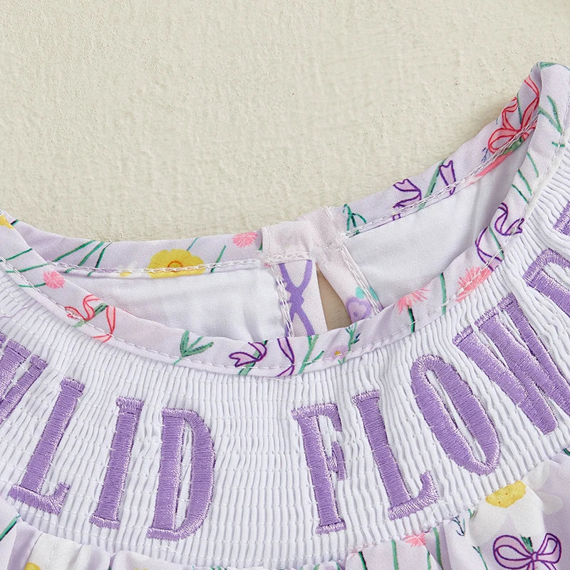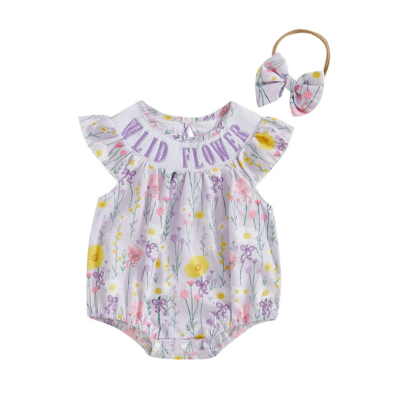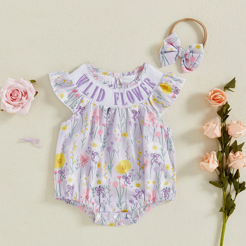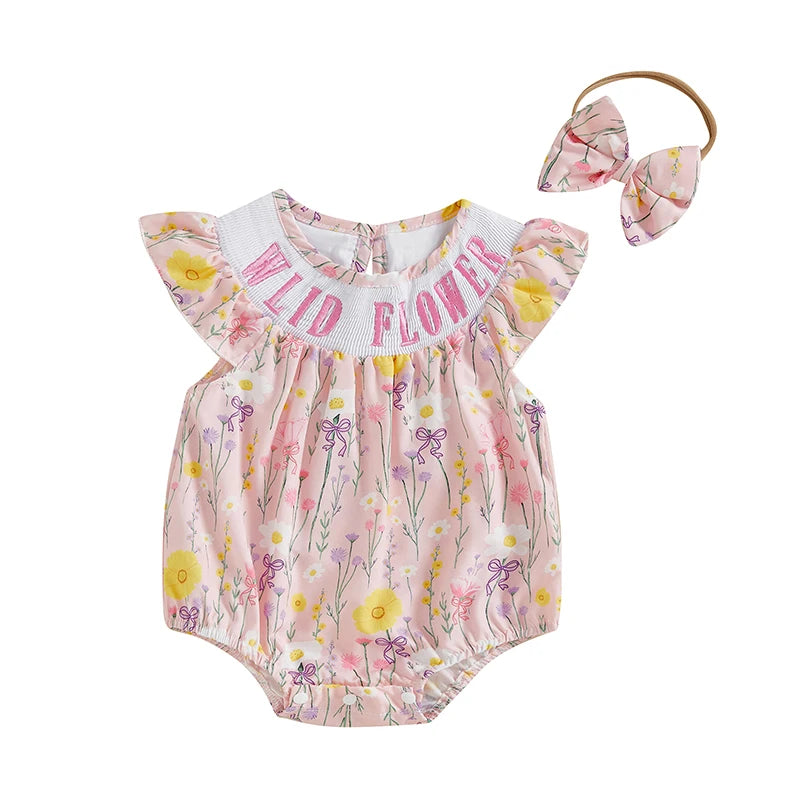 Infant Summer Jumpsuit with Flutter Sleeves and Round Neckline Adorable Floral Print Smocked for Baby Girls Cute