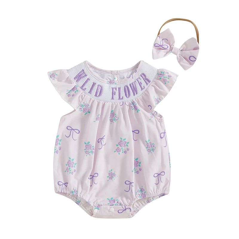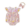 Baby Girl Summer Romper Fly Sleeve Round Neck Floral Print Smocked Bodysuit Newborn PlaysuitFeatures: