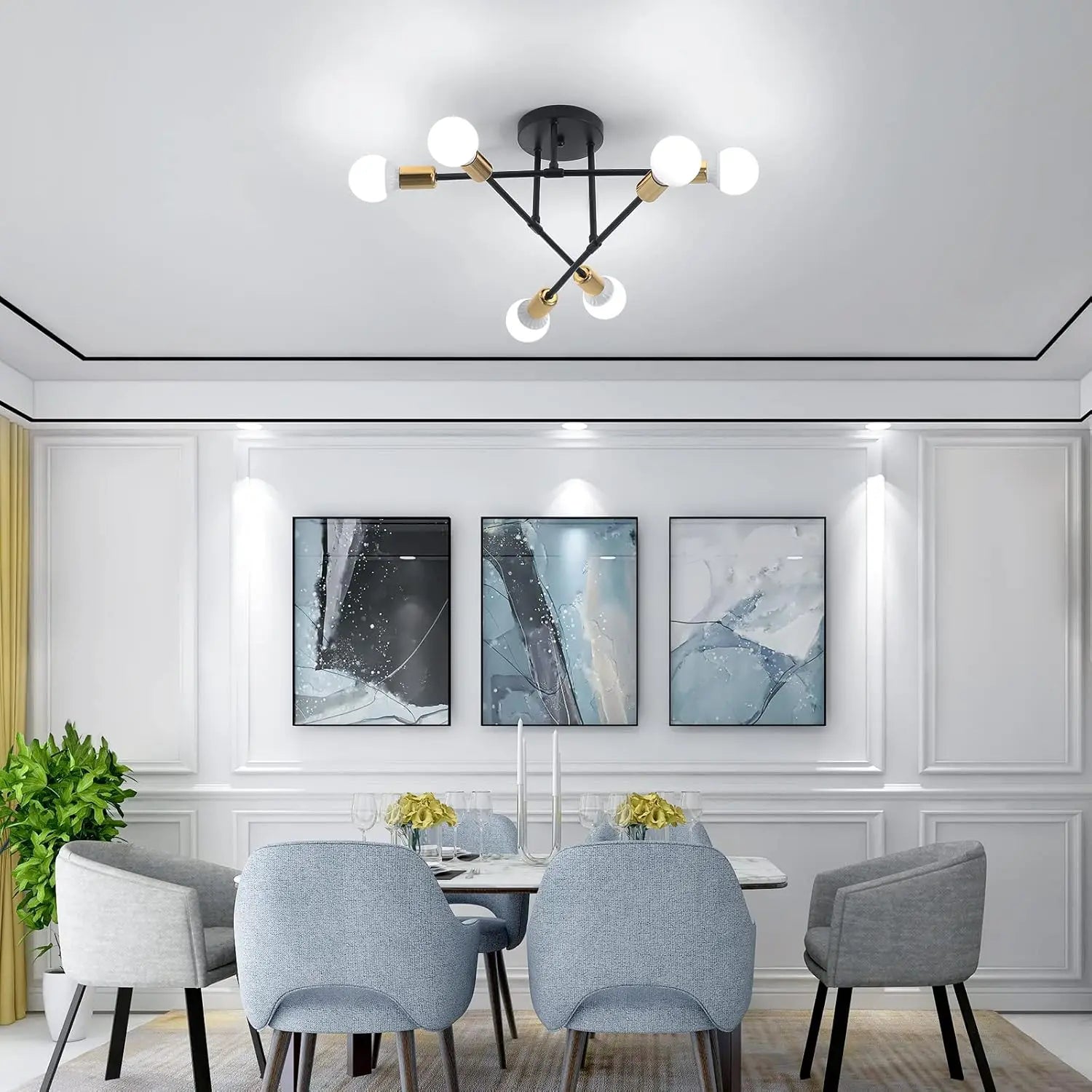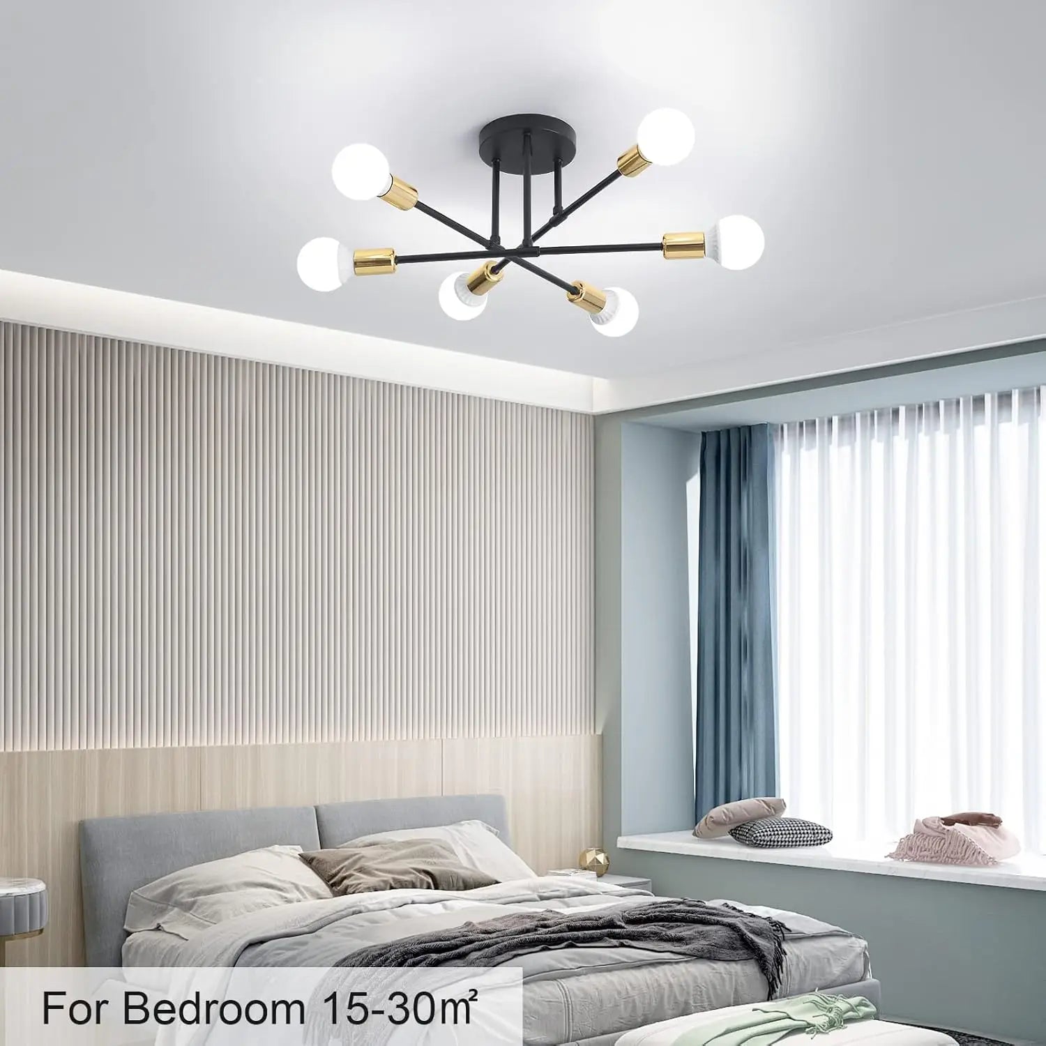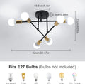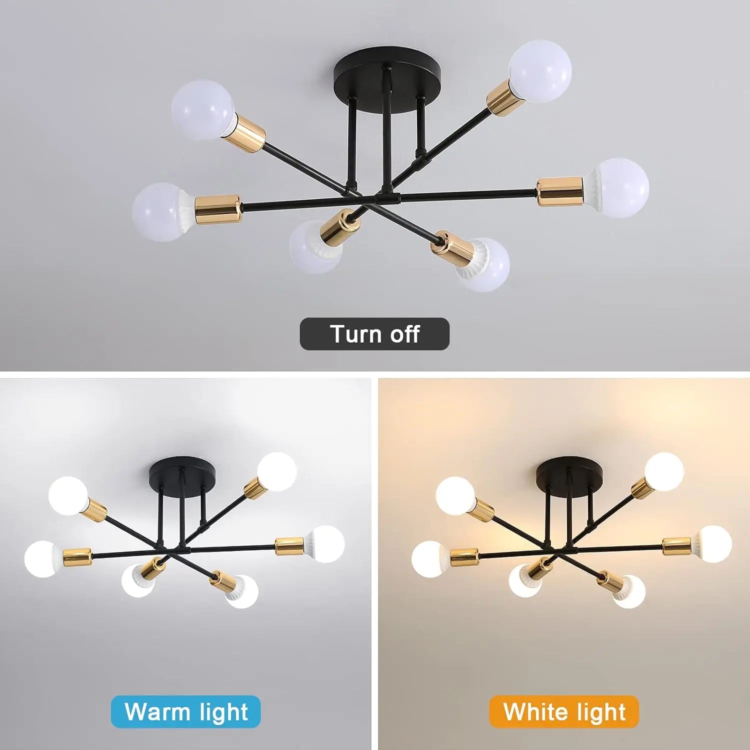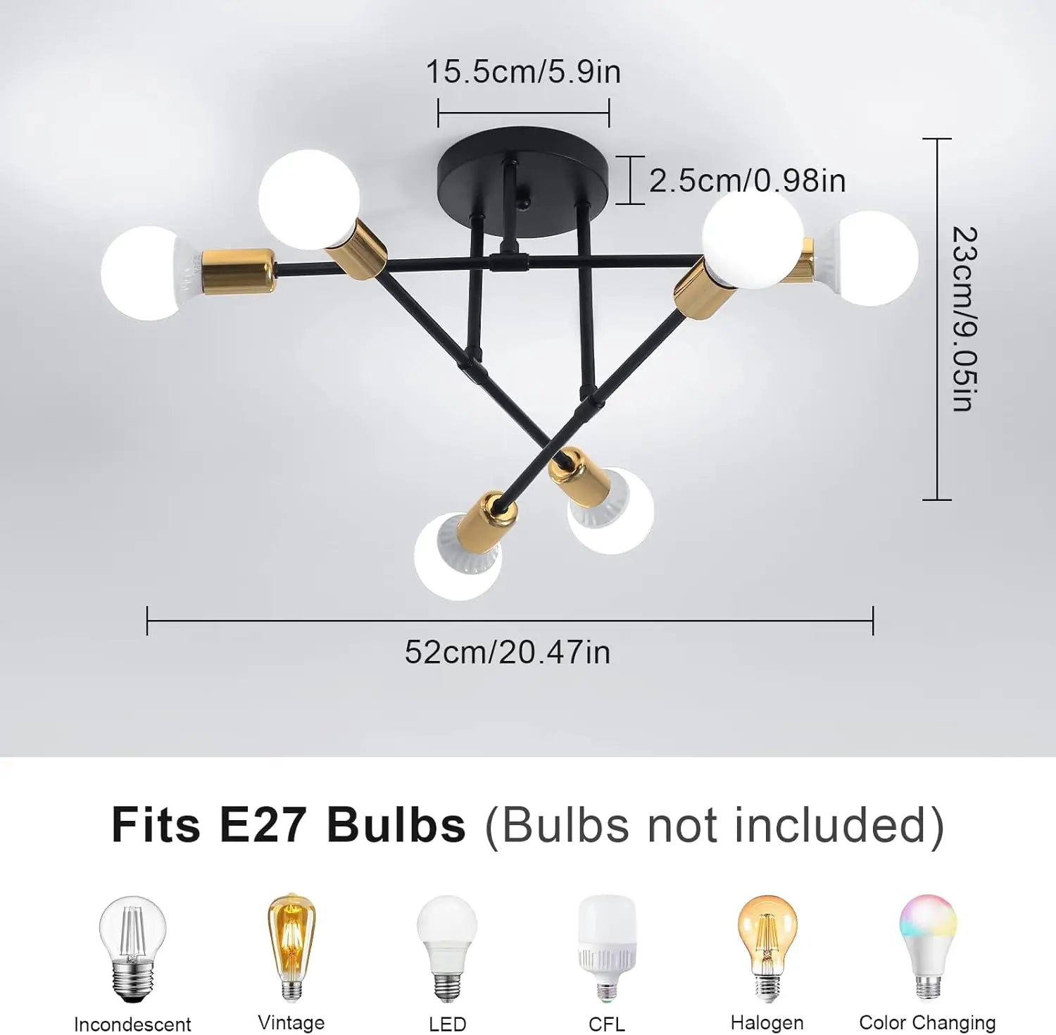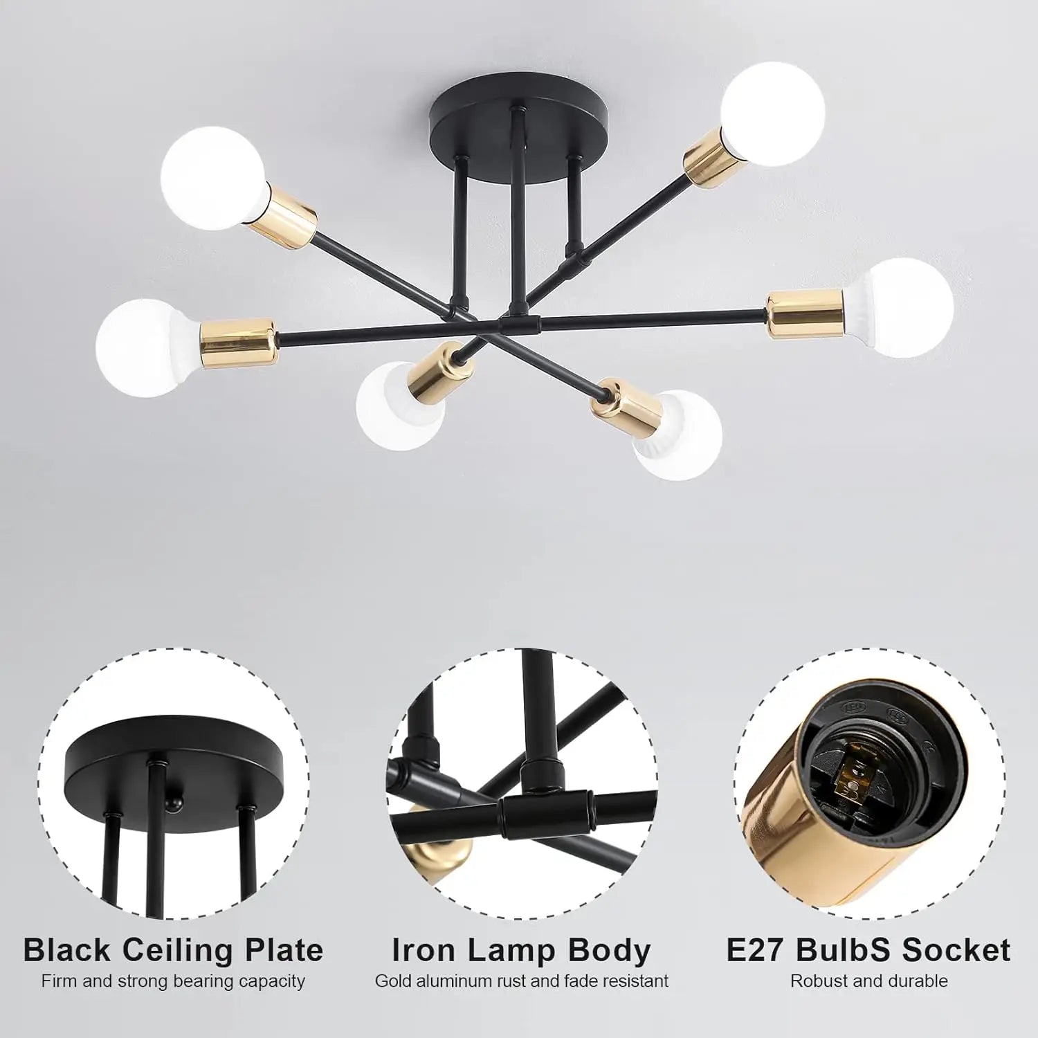 【E27 Bulb】The ceiling light contains 6 lamp sockets, which are all standard E27 screw sockets, compatible with all E27 bulbs, such as incandescent lamps, Edison lamps, halogen lamps, energy-saving lamps, and the maximum power not exceeding 60W (Note:this product light source is not included).