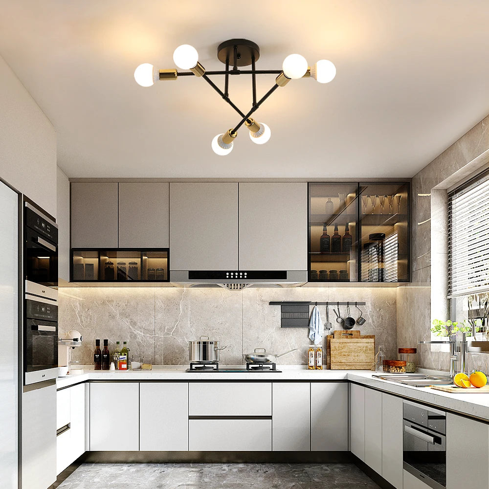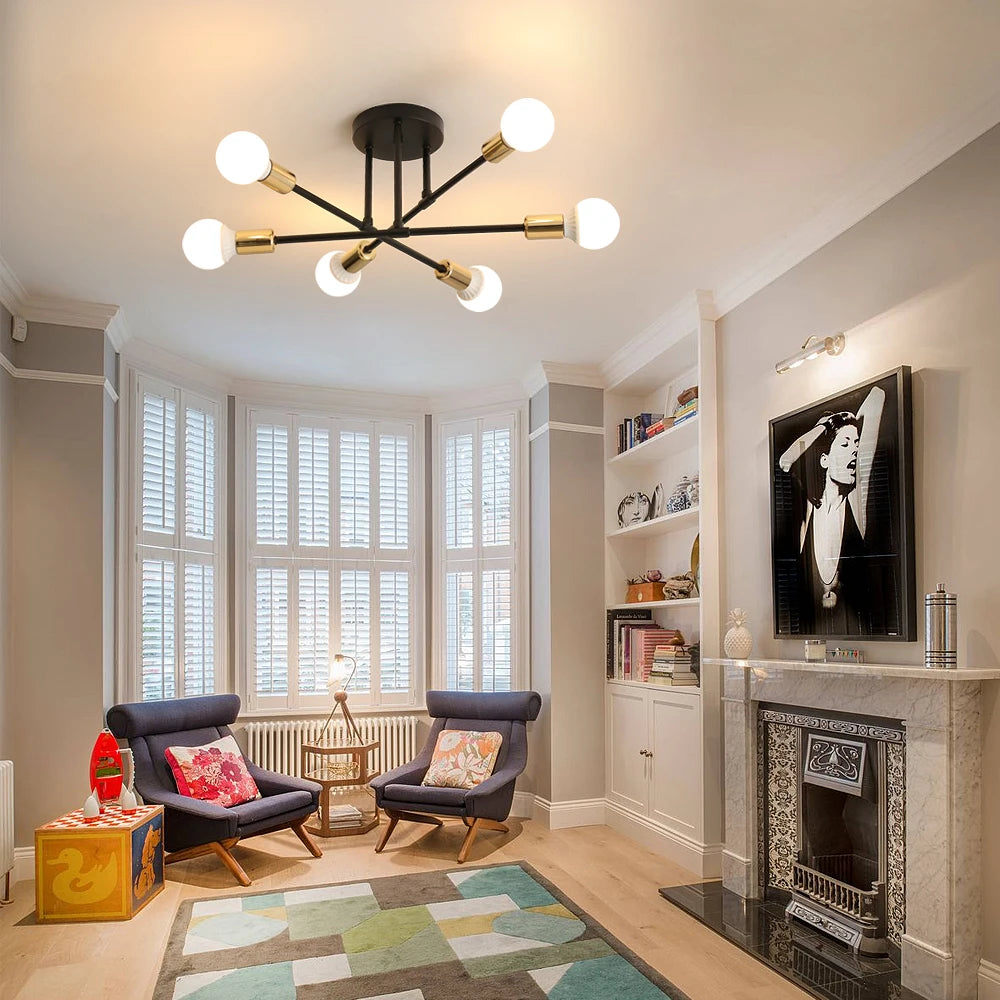 Vintage Industrial Ceiling Lamp for Living Room and Bedroom,Modern Sputnik Lamps 6 Lights,E27 Base for Kitchen (Without Bulb)
